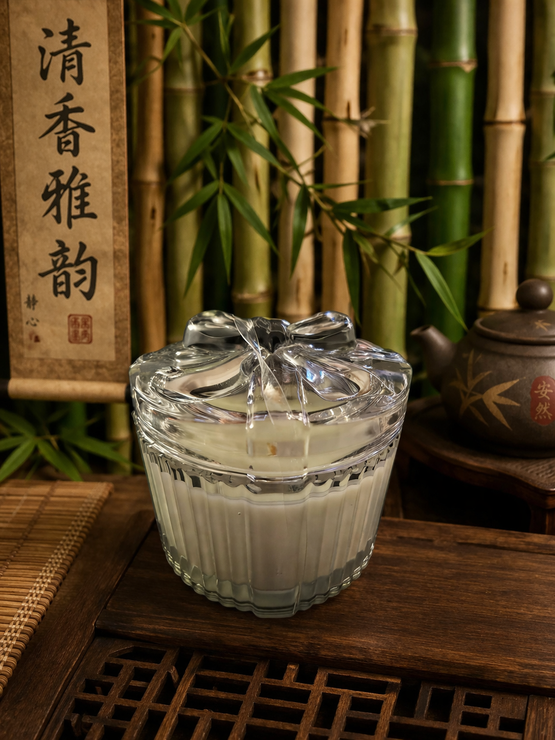 3.5oz glass jar with a bow lid of Himalayan Bamboo 100% scented soy wax. Only 2 made. Refreshing. Perfect for a smaller bedroom or bathroom.